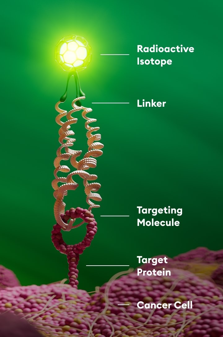 In some radiopharmaceuticals, a linker is used to attach the radioactive isotope to the targeting molecule. This is designed to provide stability and proper biodistribution of the compound.